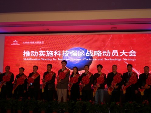 陸總(左五)榮獲北京經(jīng)濟技術開發(fā)區(qū)科技創(chuàng)新先進個人稱號