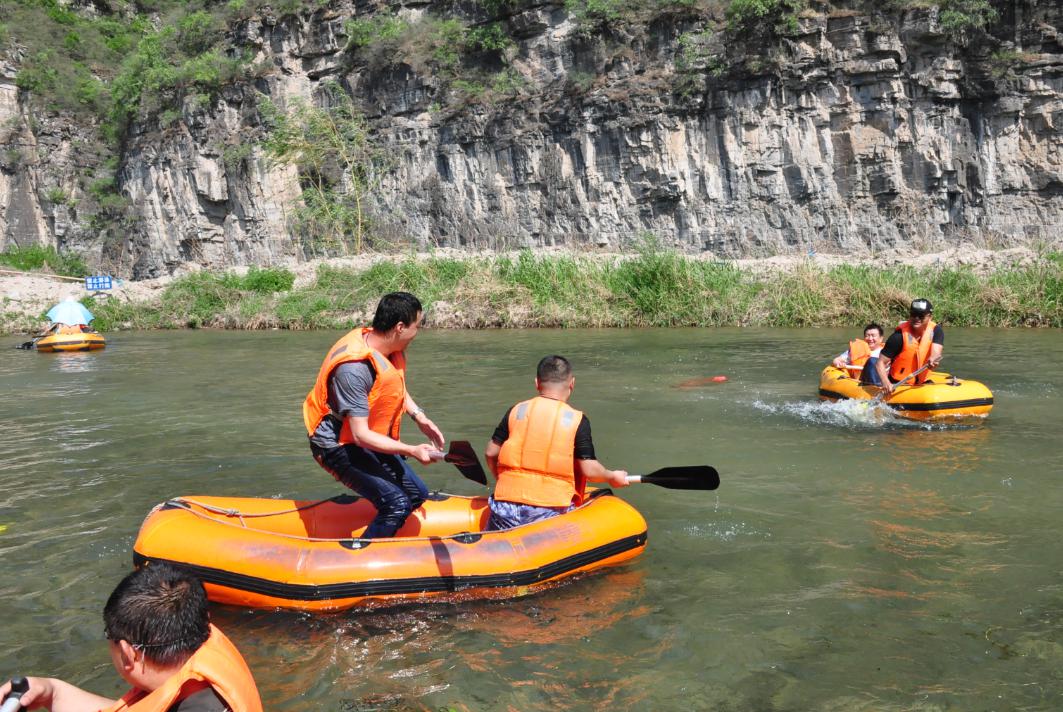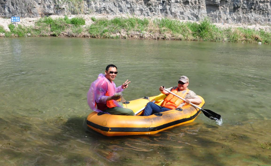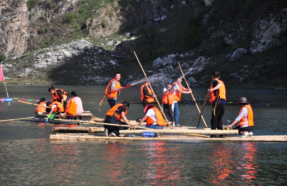 第二站:十渡漂流:坐上皮劃艇,隨波逐流,漂流河道時而平穩(wěn),時而湍急,不經(jīng)意之間愛生善戰(zhàn)的勇士開始了激烈的水戰(zhàn),“水炮”讓人防不勝防。當(dāng)天艷陽高招,日光火辣辣,人也有點(diǎn)火爆。年輕的同事們赤身上陣,漂至岸頭時大家已全部濕身,但開心快樂成為漂流過程的主旋律。