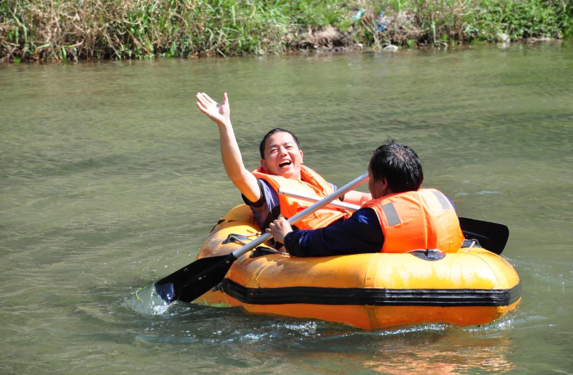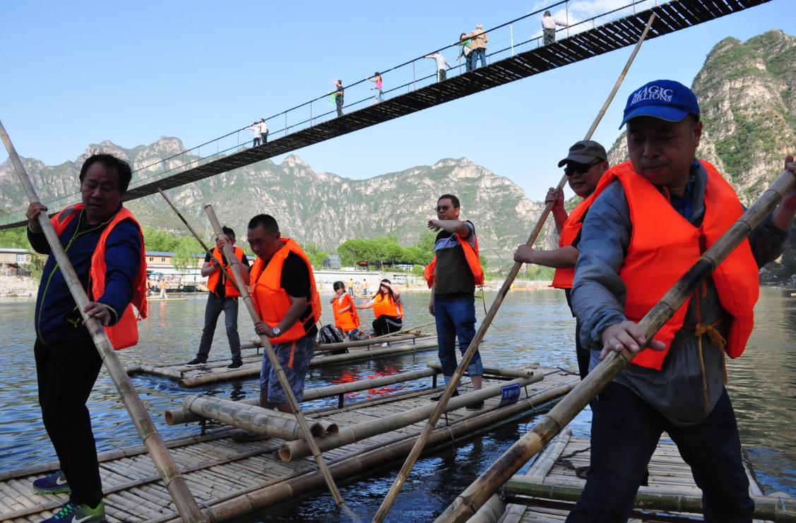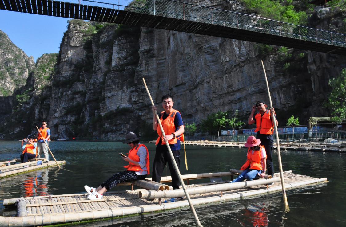 第三站:拒馬河戲竹筏,愛生團(tuán)隊分成幾組站在竹筏中,悠享春風(fēng)拂面、歡樂伴隨,笑語不斷。