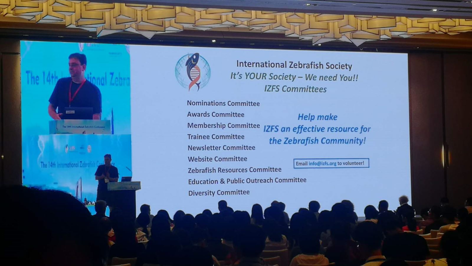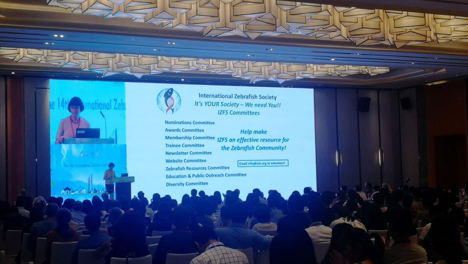“國(guó)際斑馬魚大會(huì)” (International Zebrafish Conference, IZFC), 原稱“國(guó)際斑馬魚發(fā)育和遺傳大會(huì)”(International Conference on Zebrafish Development & Genetics)。自1994年開始,在美國(guó)已連續(xù)舉辦13屆,本屆首次移師亞太在中國(guó)舉辦,吸引了來(lái)自世界各地1000多位斑馬魚研究者。大會(huì)特邀主題報(bào)告人包括諾貝爾獎(jiǎng)獲得者Christiane Nüsslein-Volhard教授、中國(guó)科學(xué)院院士周琪研究員、中國(guó)科學(xué)院院士蒲慕明研究員等。